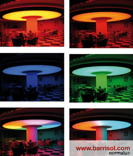 De Barrisol Lumière Color® folies zijn translucent en ideaal om het licht zacht en homogeen te verspreiden. Dankzij de verschillende kleuren en lichtdoorlaatbaarheid van de folies, kan het licht soms levendig, gekleurd of natuurlijk verspreid worden, volgens het gewenste effect dat men wil bereiken. De Led-verlichtingssystemen worden achter de Barrisol Lumière Color® folie geplaatst.